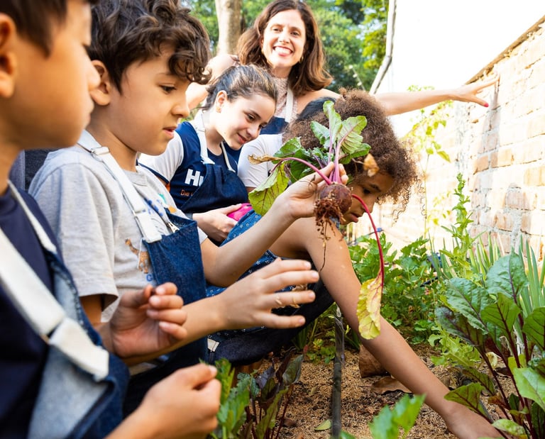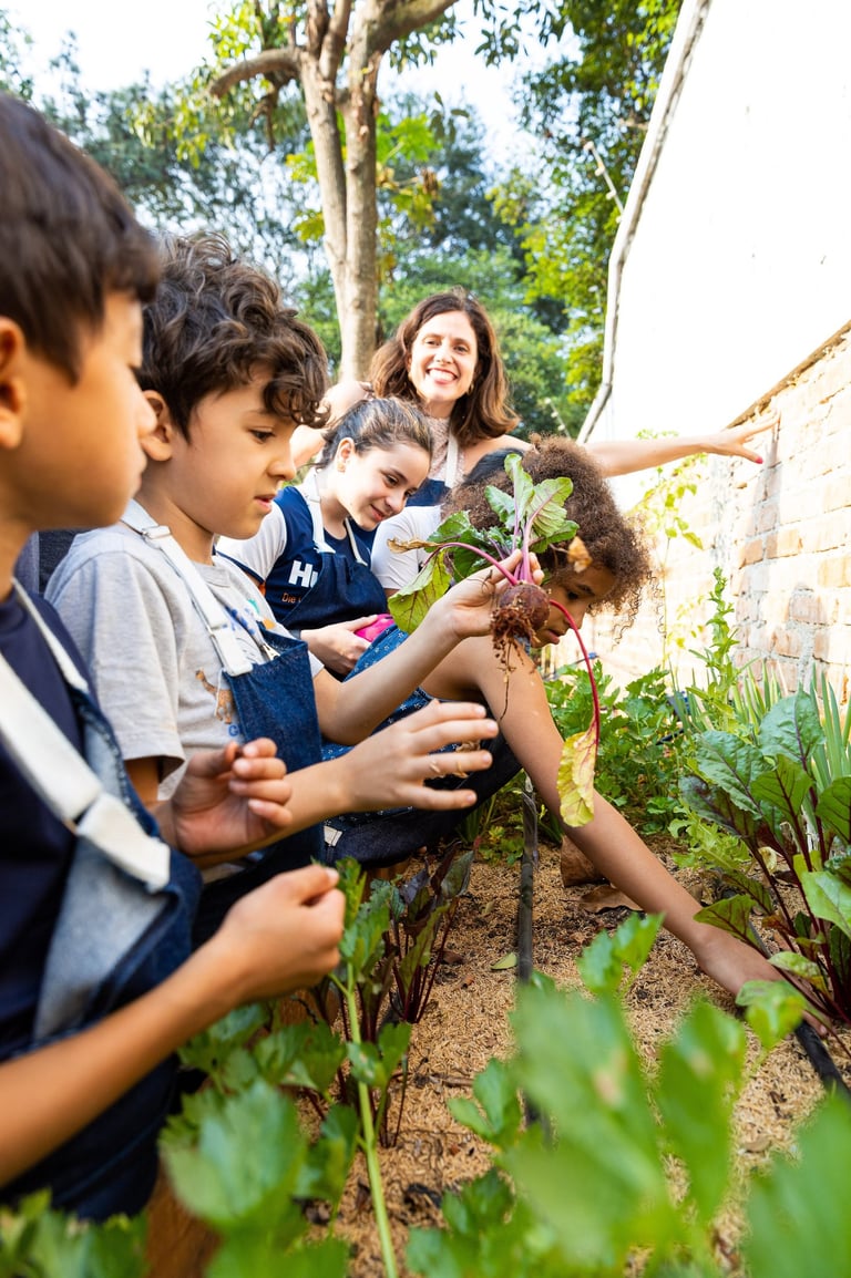O Aprendiz Natureza é nosso programa de educação ambiental e vivências na horta — um percurso mão na terra para crianças.