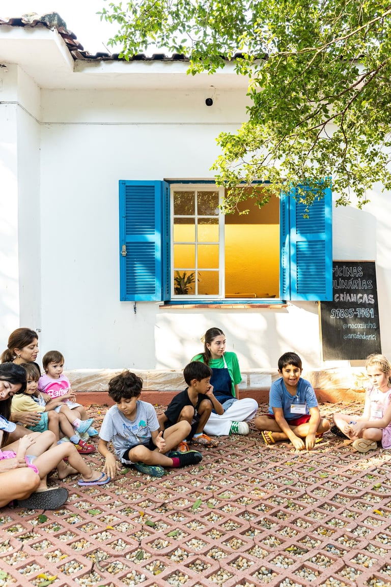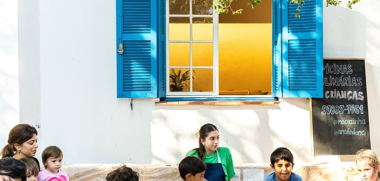 Crianças e adolescente cozinham, experimentam e aprendem sobre alimentação de forma leve e divertida. Oficinas curtas (60 a 90 min).