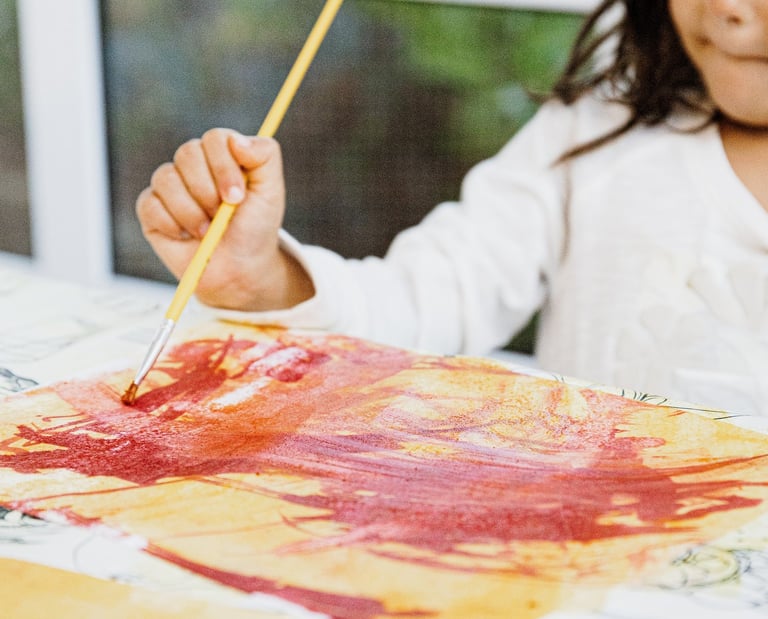 Nas salas de artes, as atividades entram como parceiras para ampliar repertório sensorial, coordenação, paciência e expressão.