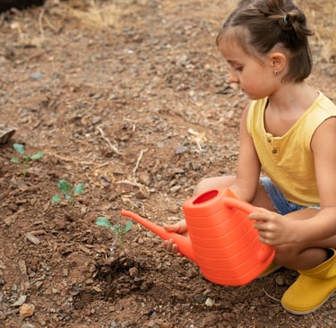 Na horta, a criança percebe que não existe controle absoluto. Algumas sementes germinam, outras não. A chuva importa. O sol importa. O tempo importa.